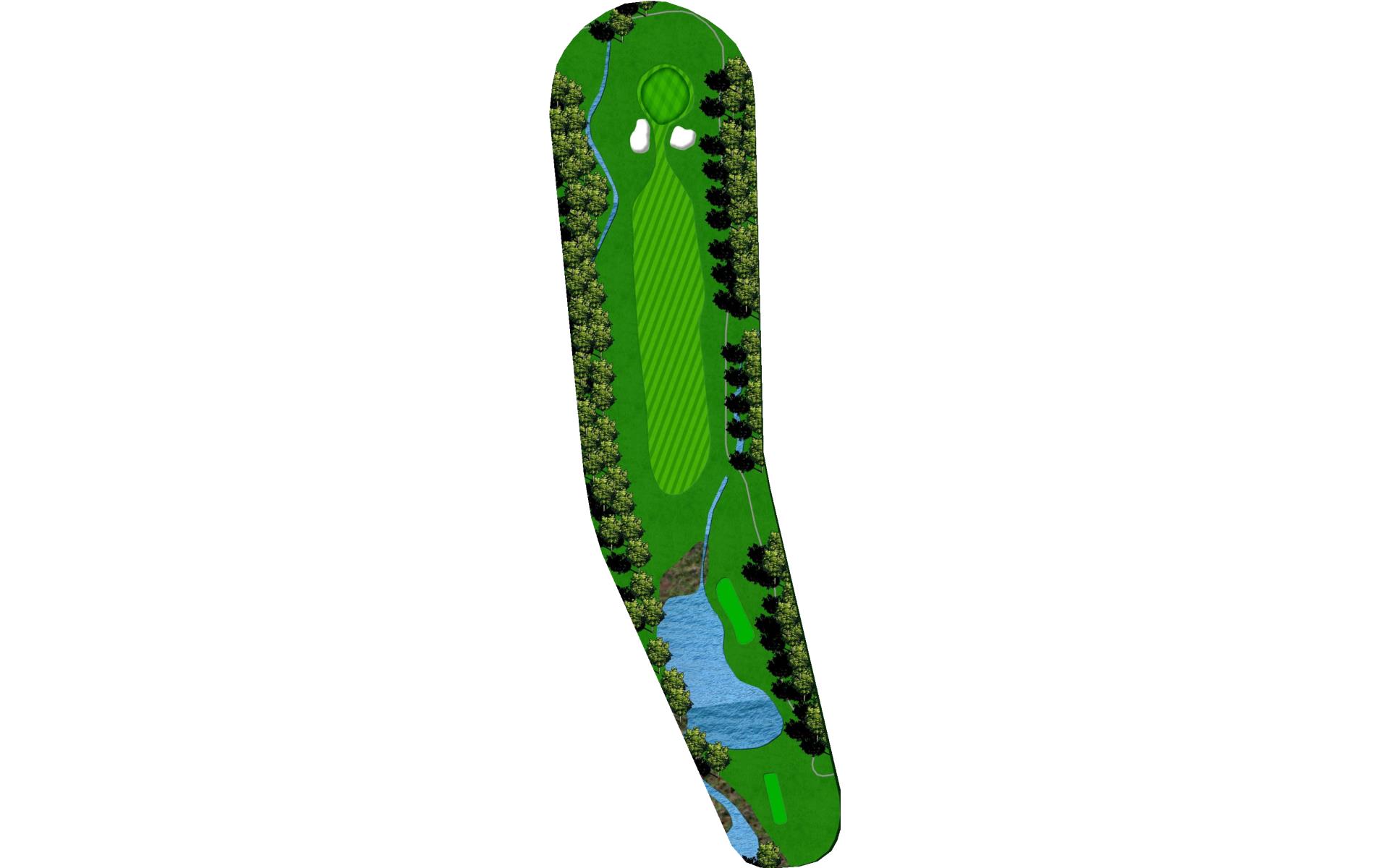 You need a well placed tee shot that is 160-180 yards from the green. If you hit your tee shot too far you could be on a dowhill lie or too far into the hazard. The second tee shot could be blind if you do not hit it far enough. The second shot needs to be hit well to avaod the hazards on both side of the hole. The grreen is narrow in the front and wide in the back.